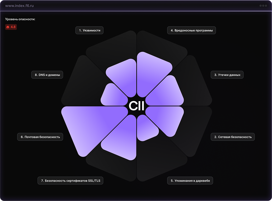 С 30 мая 2025 года действует закон №420-ФЗ: за утечку персональных данных предусмотрены оборотные штрафы до 600 млн рублей. Индекс помогает заранее выявлять риски и предотвратить инцидент.
